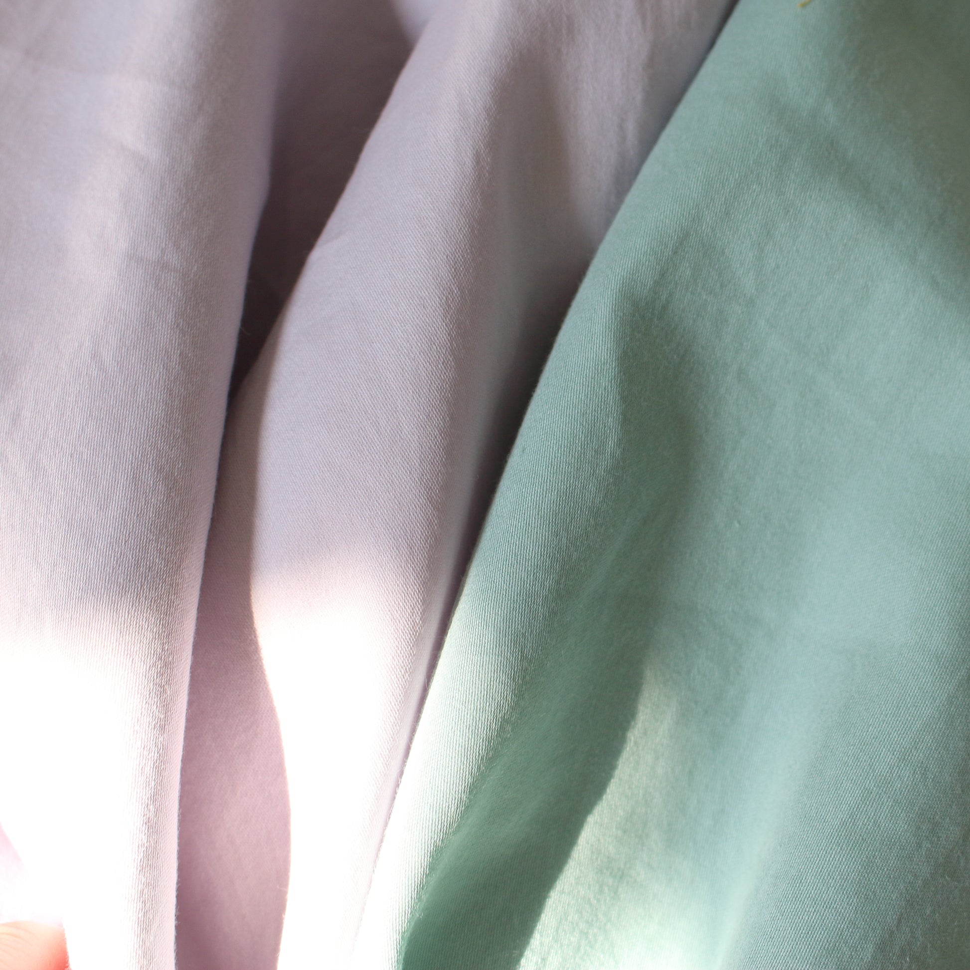 細番手のコットンで織られたサテンをふんわり優しい風合いに仕上げました