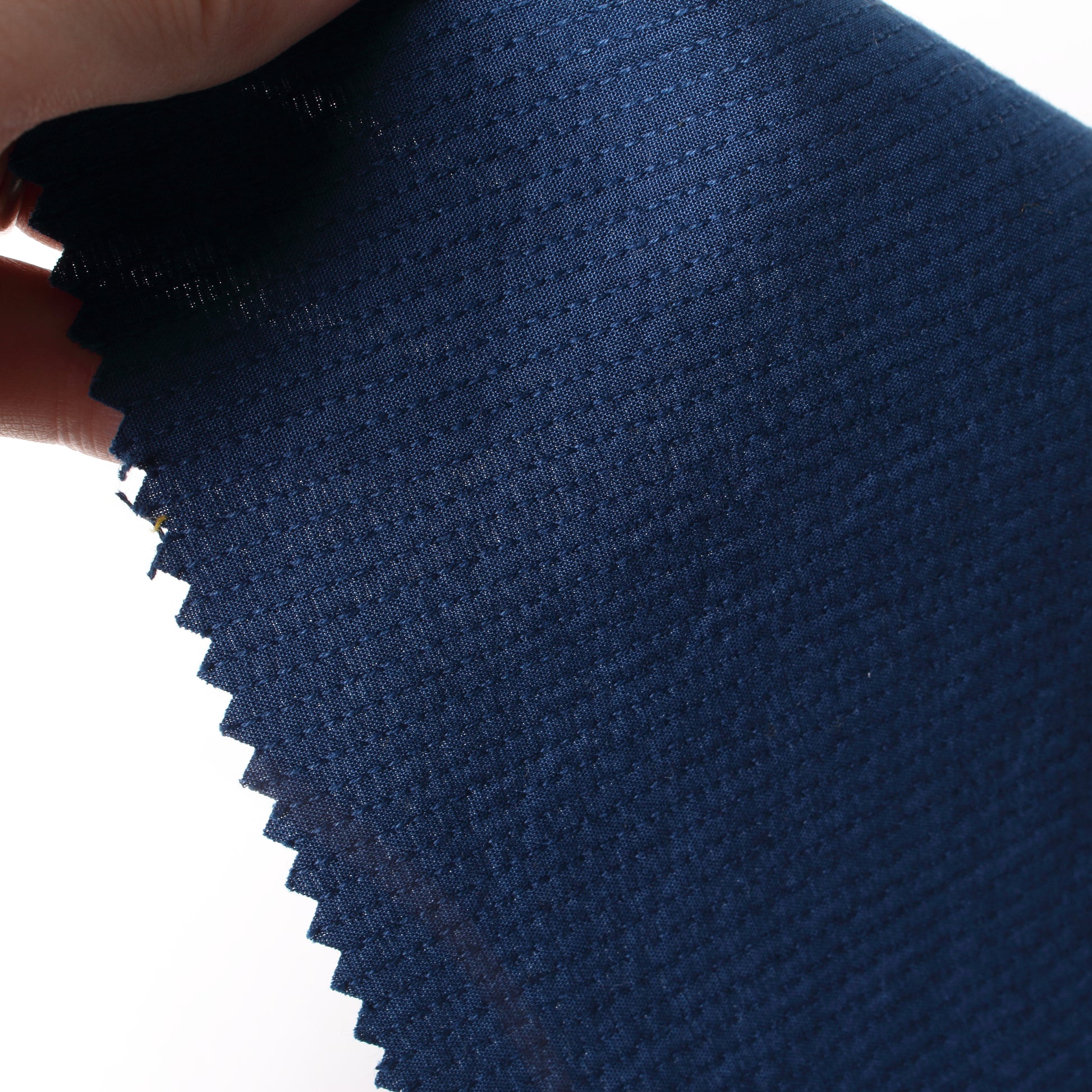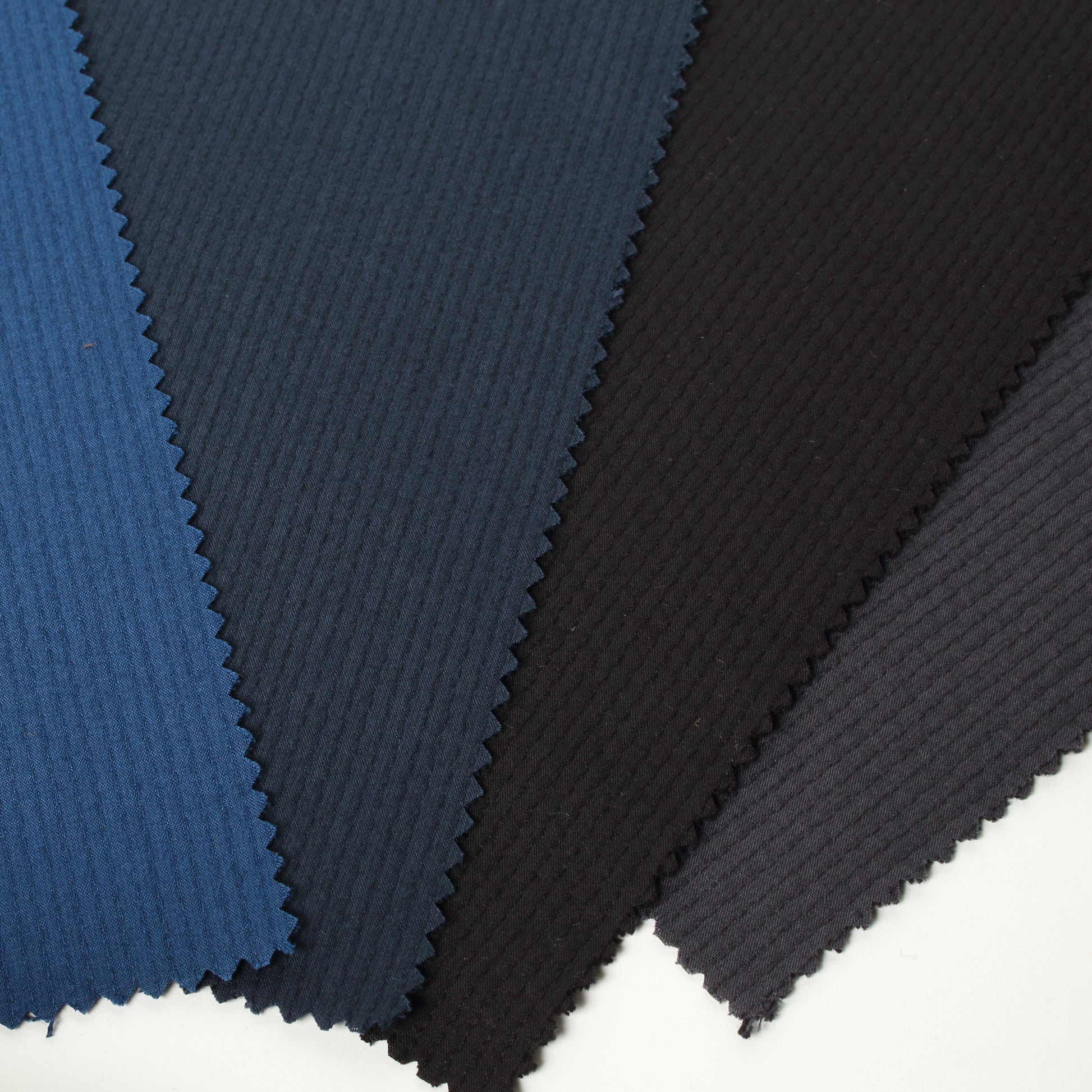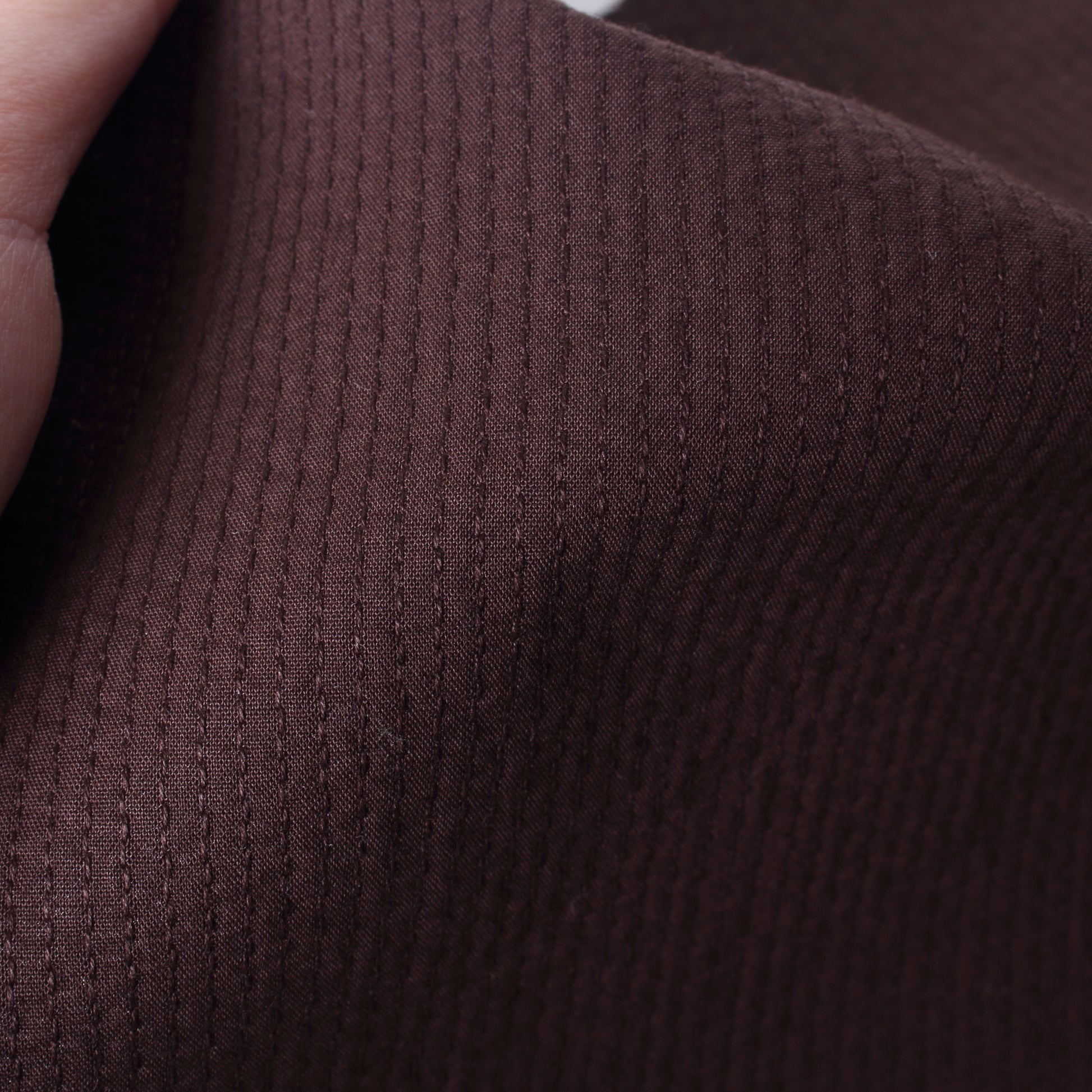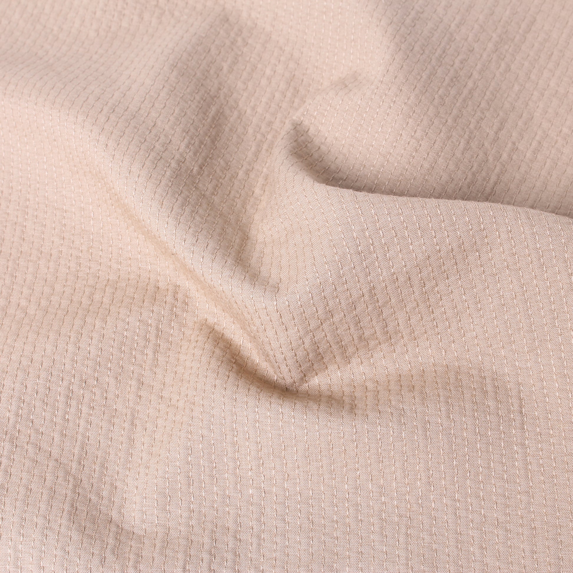 表と裏のテンションの差を利用することで、ふわふわ・ぽこぽことしたステッチが際立つクラフト感のあるドビー生地が出来上がりました。