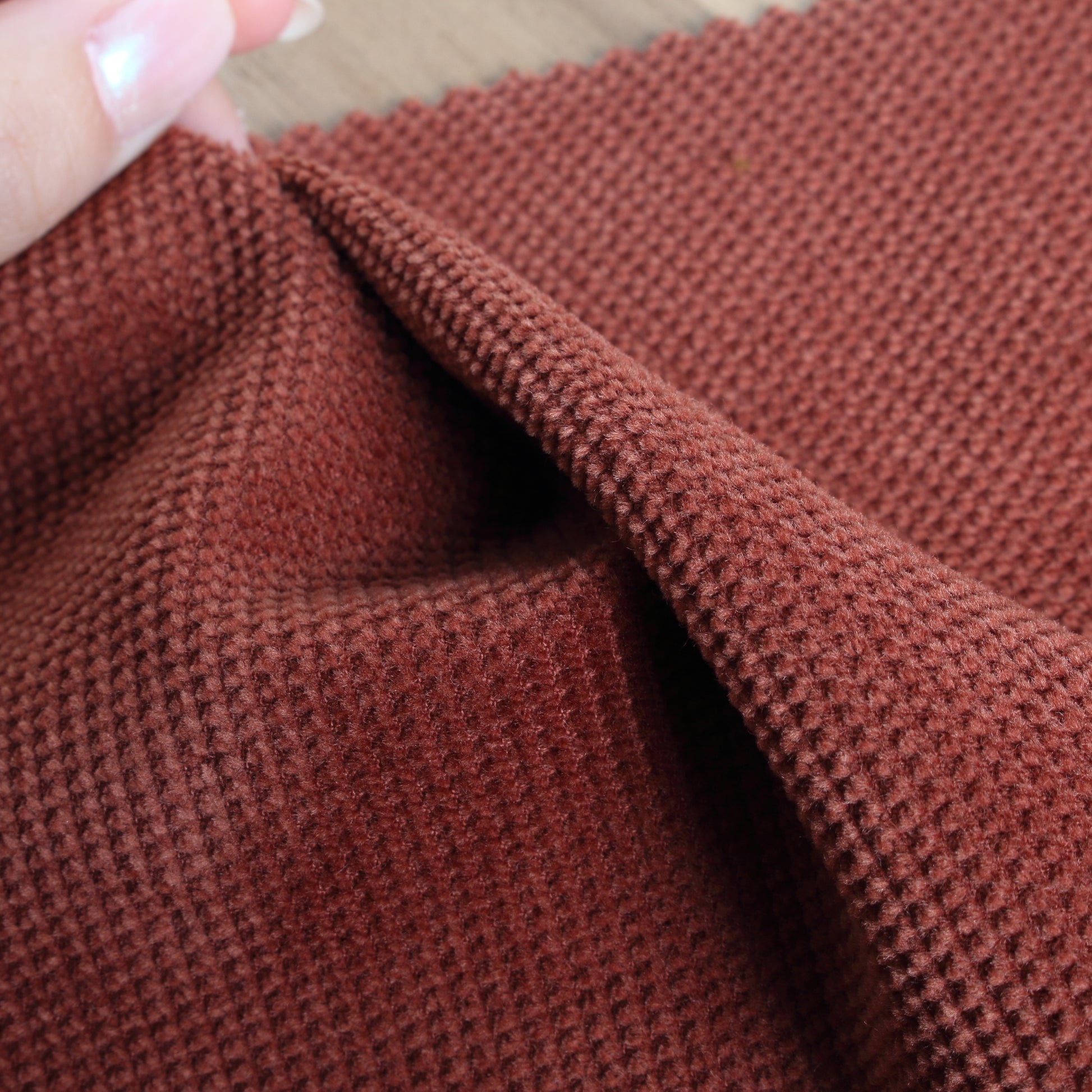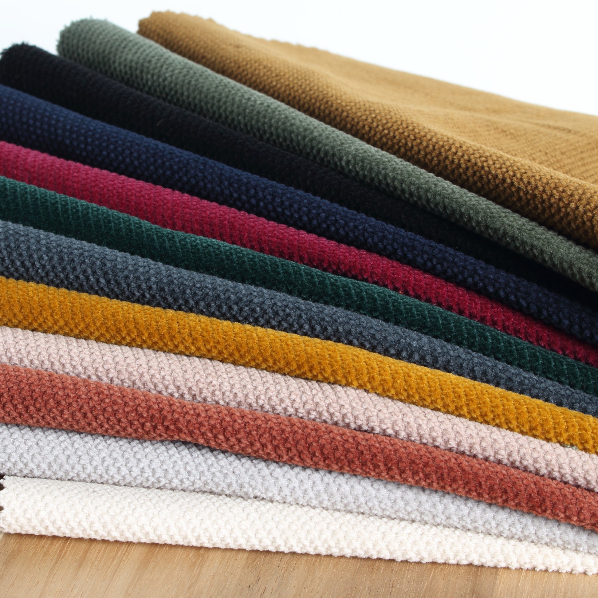 程よい厚みがあり、ふっくらポコポコとした見た目でとても温かみのある生地です。