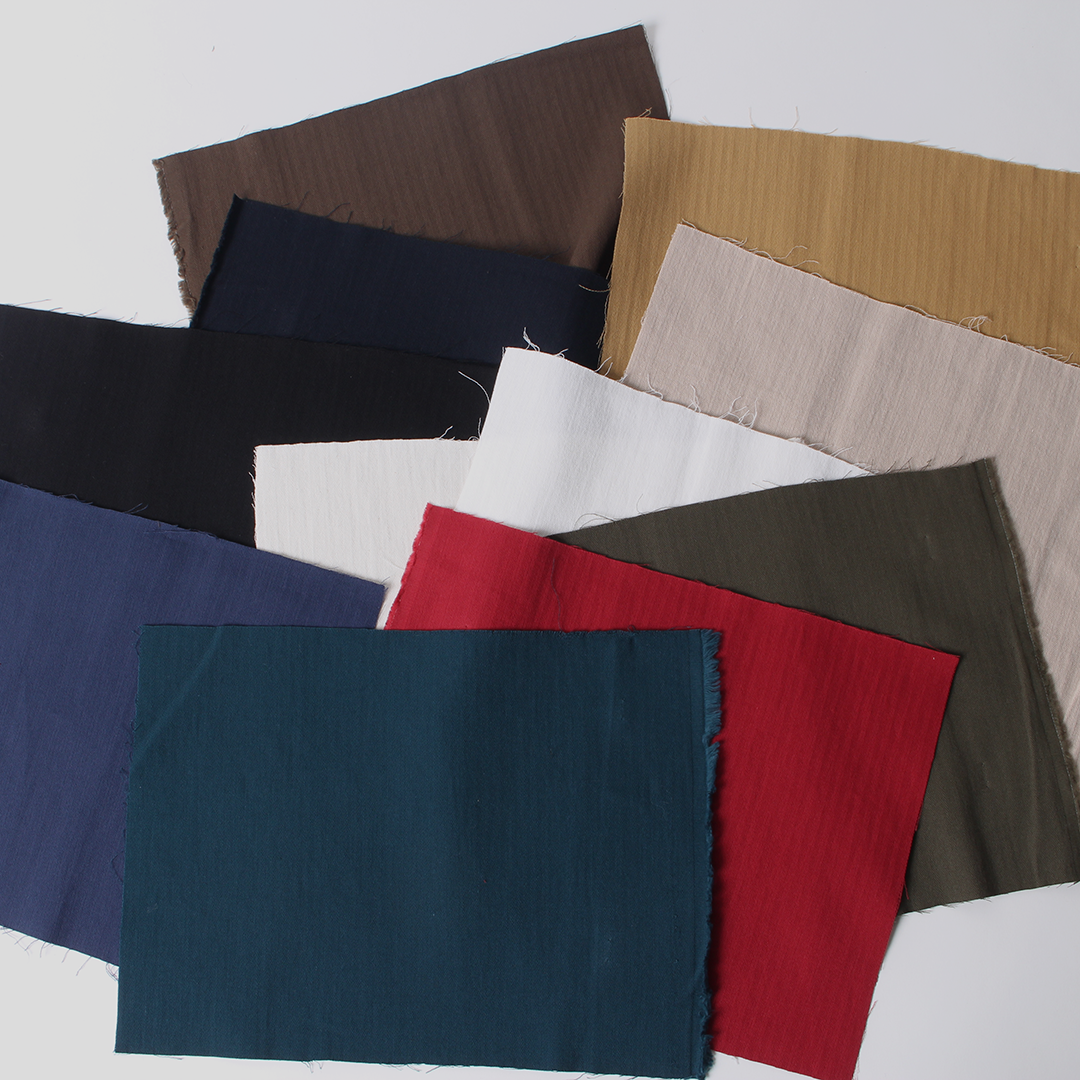 大量生産されている生地とは違い、職人さんが時間と手間暇をかけて染め・加工された希少価値の高い生地。小さな窯で作業をするため、生地の場所やロットによって、色合い・風合いが若干異なります。手による作業が垣間見れる味わいのある生地です。